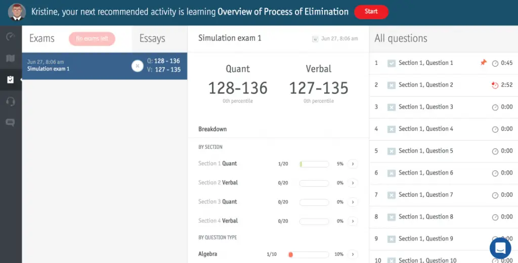 These practice exams are one of the best features of the program. There’s no better preparation for the real GRE than putting yourself through full-length exams.