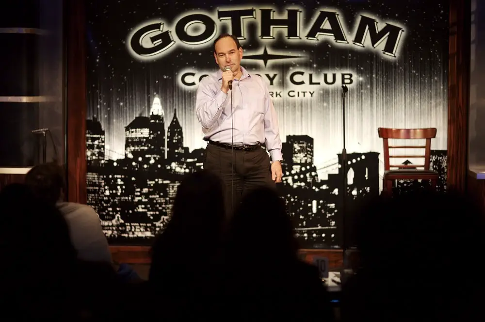 Don’t be a comedian like me. Be a much younger comedian. It’s a pretty ageist business. I started by taking a comedy class. Some comedians will say you can’t learn to be funny in a classroom. They’re wrong. You can’t become funny but you can learn how to be funnier. You can learn techniques for writing and performing better. You’ll make friends with other people just starting out. And the most important lesson- how not to hit yourself in the face with the microphone if it’s stuck in the mic stand and you have to pull hard to get it out.