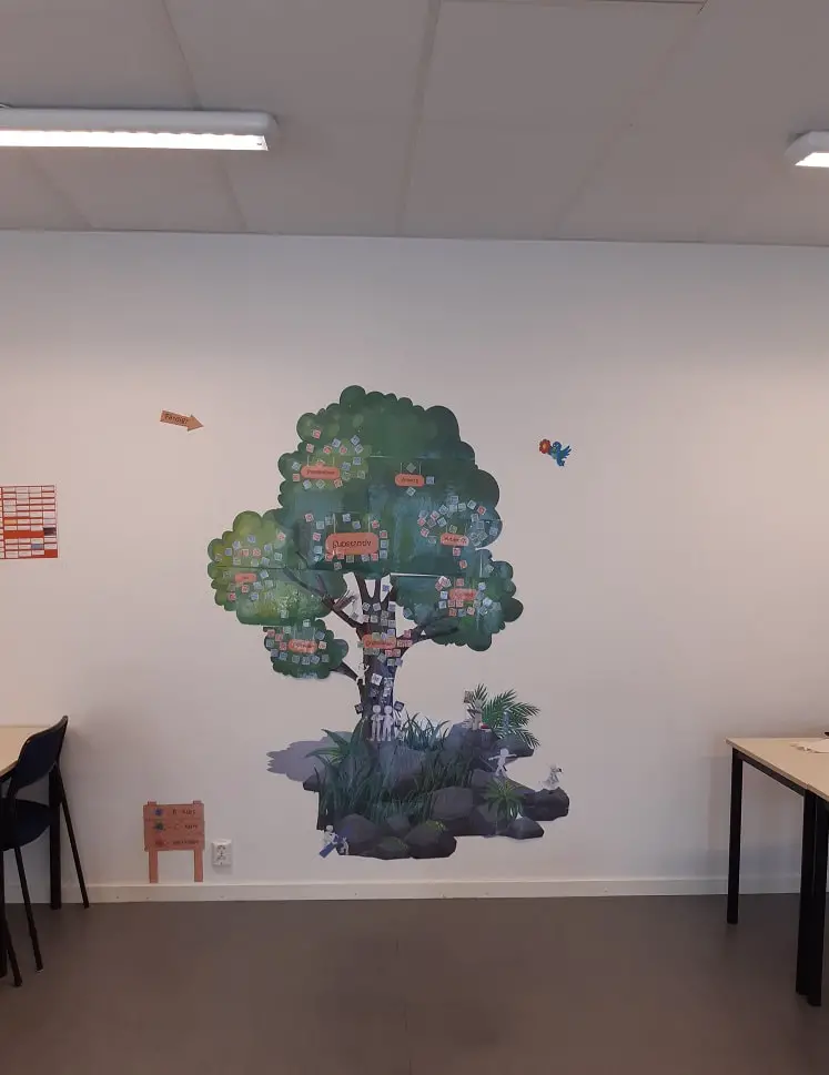 A QR-tree that I placed in the common room. The QR-codes takes you to documentaries and learning tools to practice homework in the corridor.